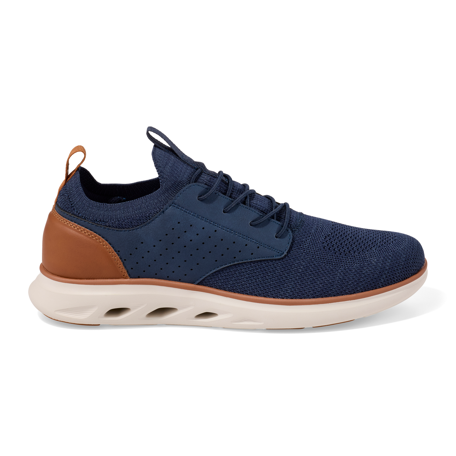 The navy Tyler shoe combines modern athletic design with everyday versatility, offering a breathable knit upper that moves with you for dynamic comfort. Its cushioned footbed and responsive midsole ab…