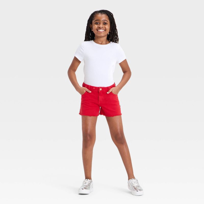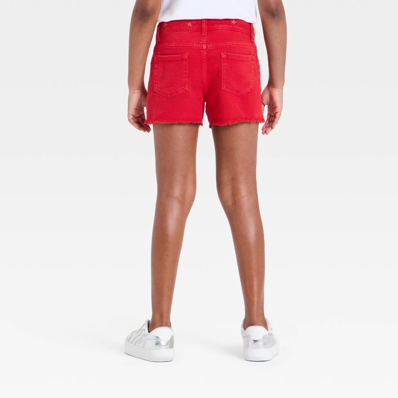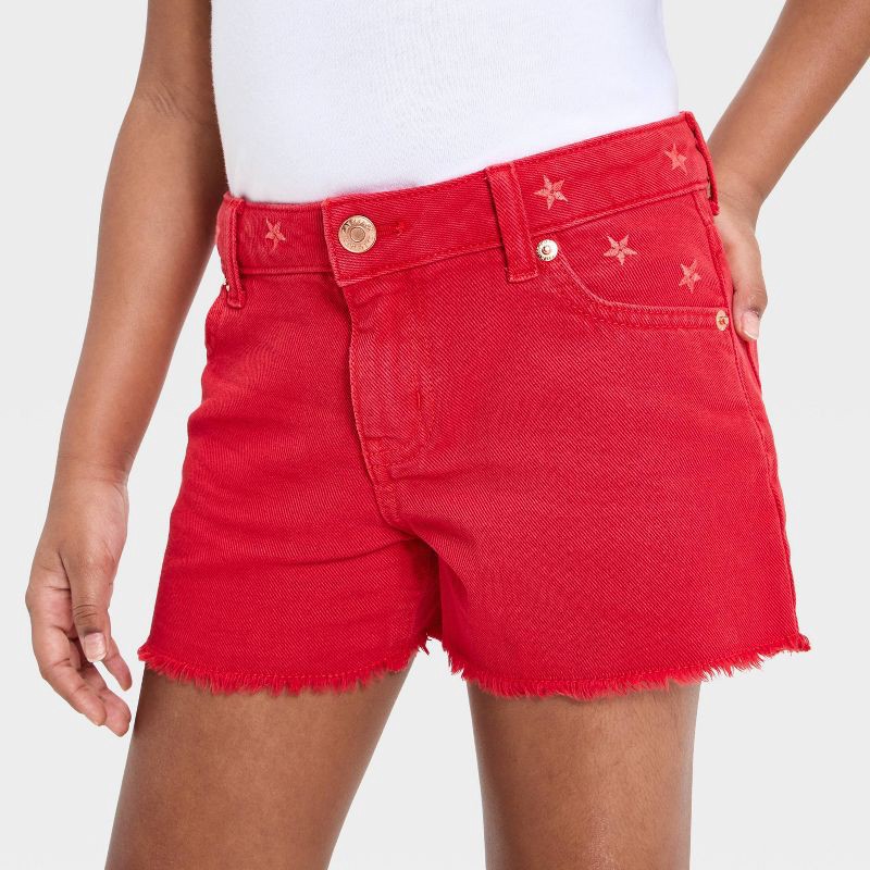 Girls' Mid-Rise Embroidered Star Cutoff Jean Shorts - Cat & Jack™ Red S