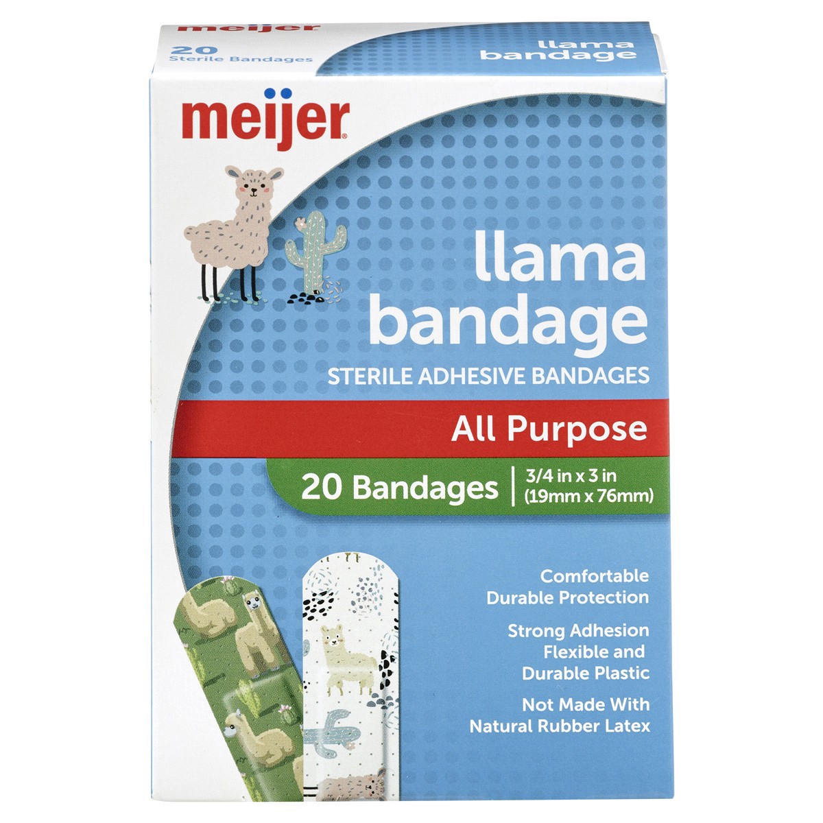 Meijer Sterile Adhesive Bandages, Llamas, 3/4 In X 3 In, 20 Ct