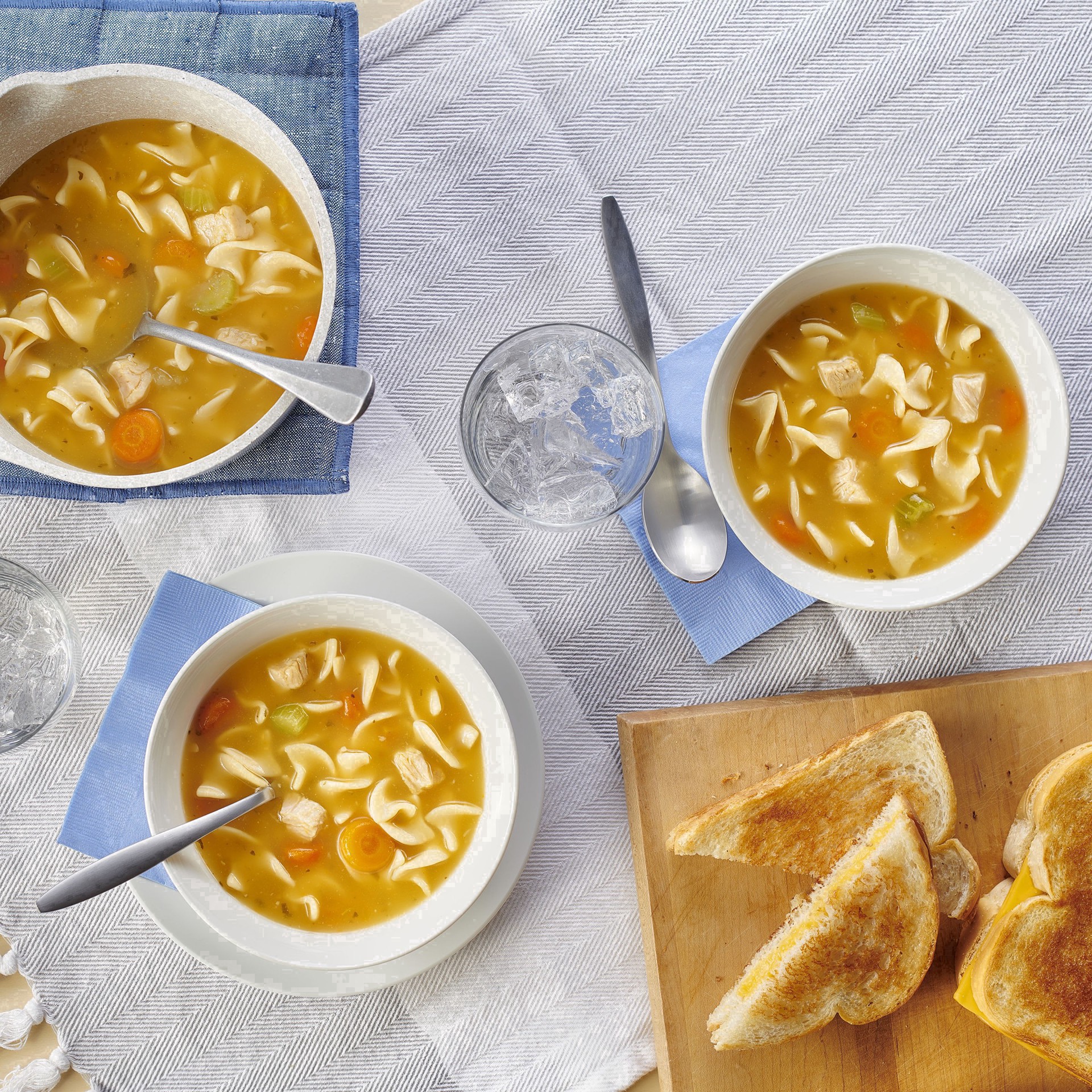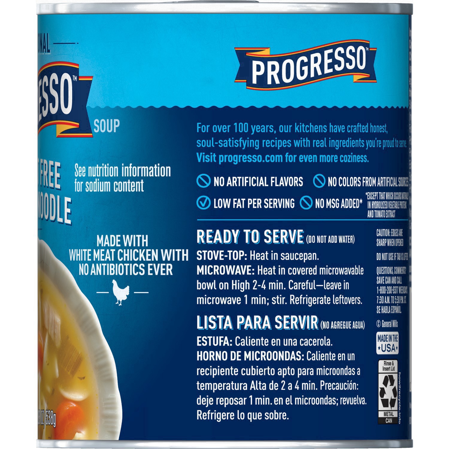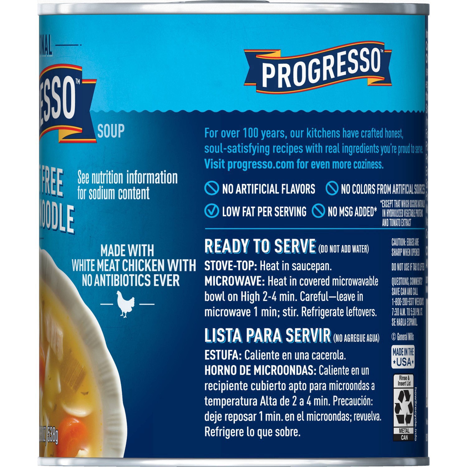 Savor every spoonful of a delicious chicken noodle soup that is low fat*. Progresso 99% Fat Free* Chicken Noodle Soup is full of tasty egg noodles, savory vegetables and chicken. This microwavable sou…