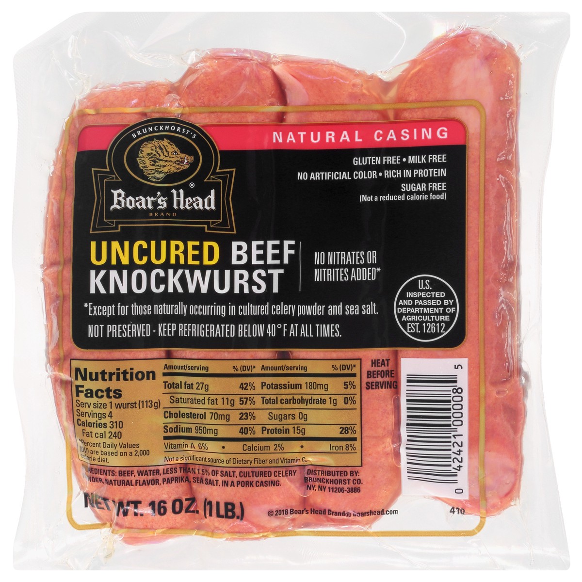 Boar's Head Uncured Beef Knockwurst