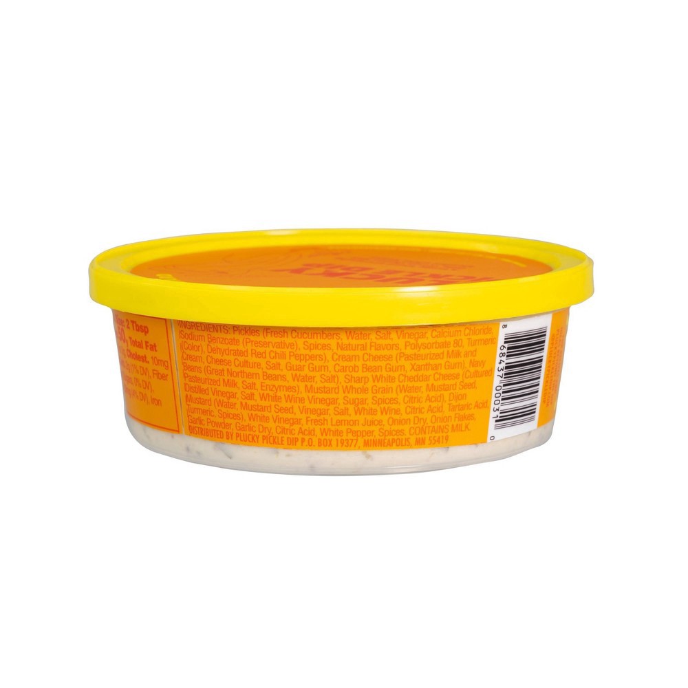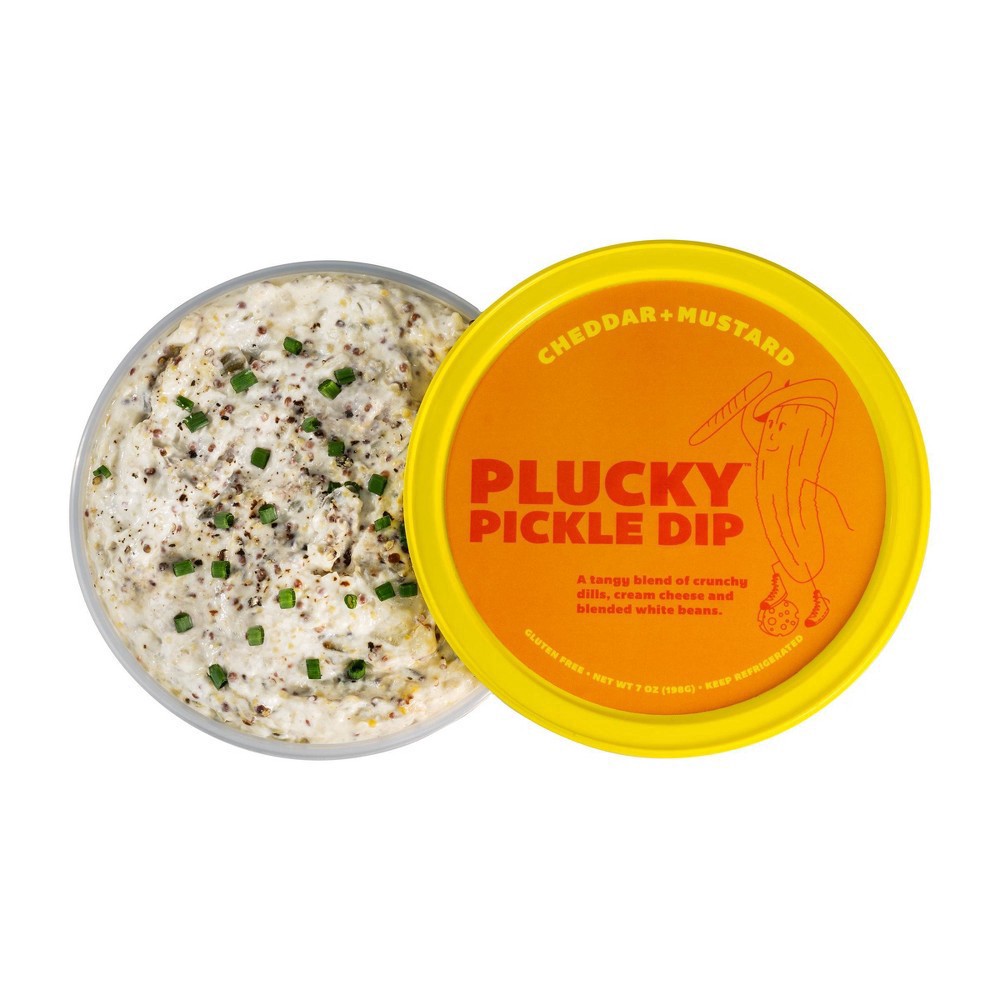 Plucky Pickle Dip is a tangy, crunchy, spready, dippy snack made with real dill pickles, savory spices and blended white beans and cream cheese. Plucky Cheddar + Mustard features coarse-chopped kosher…