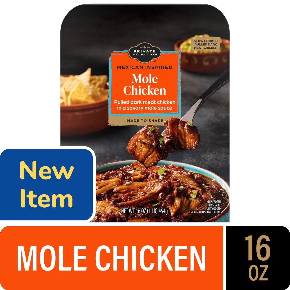 Private Selection® Mexican Inspired Mole Chicken transforms your kitchen into an epicurean delight. Pulled dark meat chicken is slow cooked for tenderness and then mixed in a savory mole sauce to deli…
