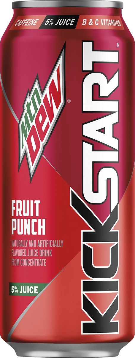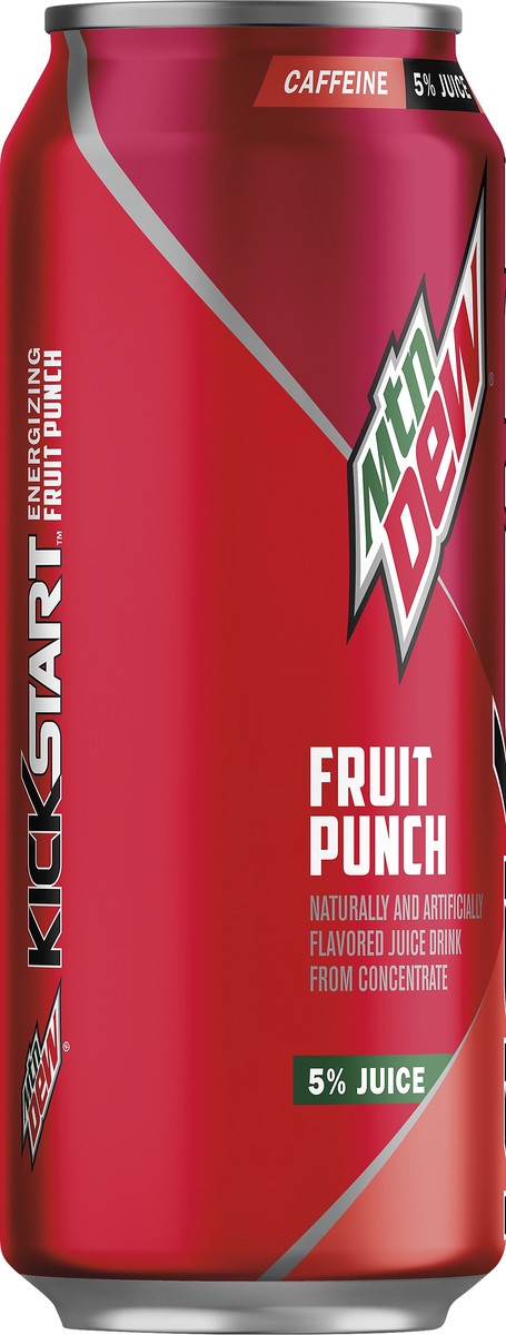 Kickstart by Mountain Dew in energizing Fruit Punch.