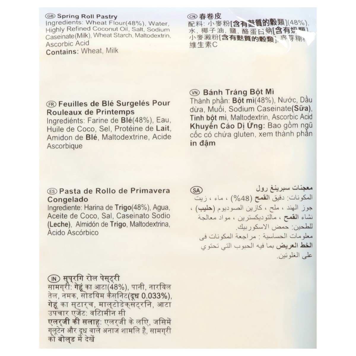 Wheat Flour (48%), Water, Highly Refined Coconut Oil, Salt, Sodium Caseinate (Milk), Wheat Starch, Maltodextrin, Ascorbic Acid.