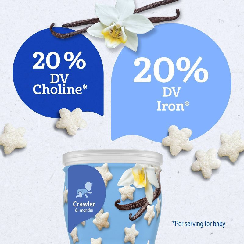 - NUTRITIOUS: These vanilla puffs baby snacks have 6 vitamins and minerals including 20% of the daily value of iron & choline, and whole grains