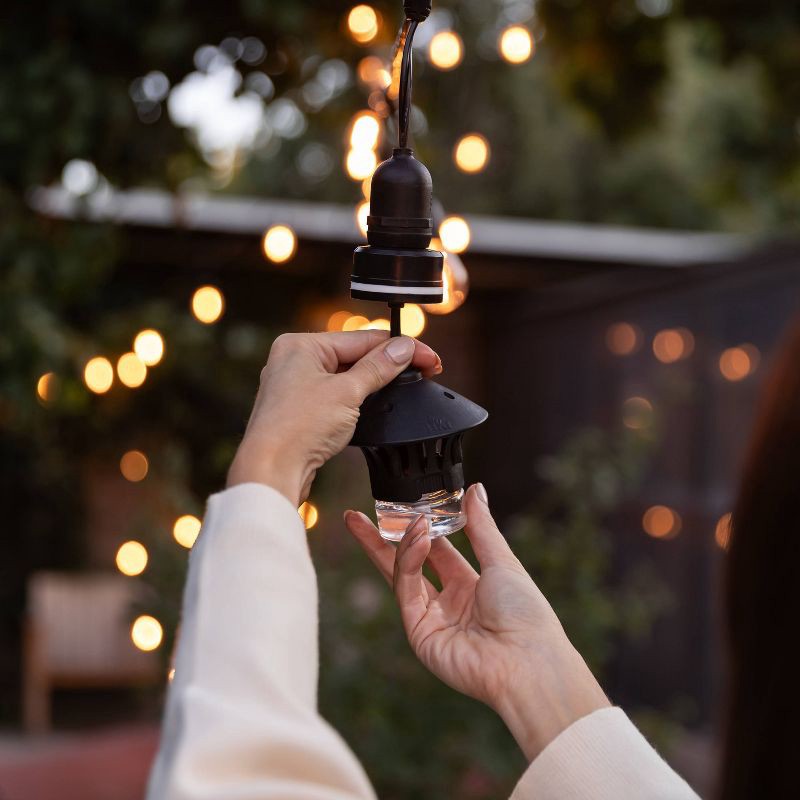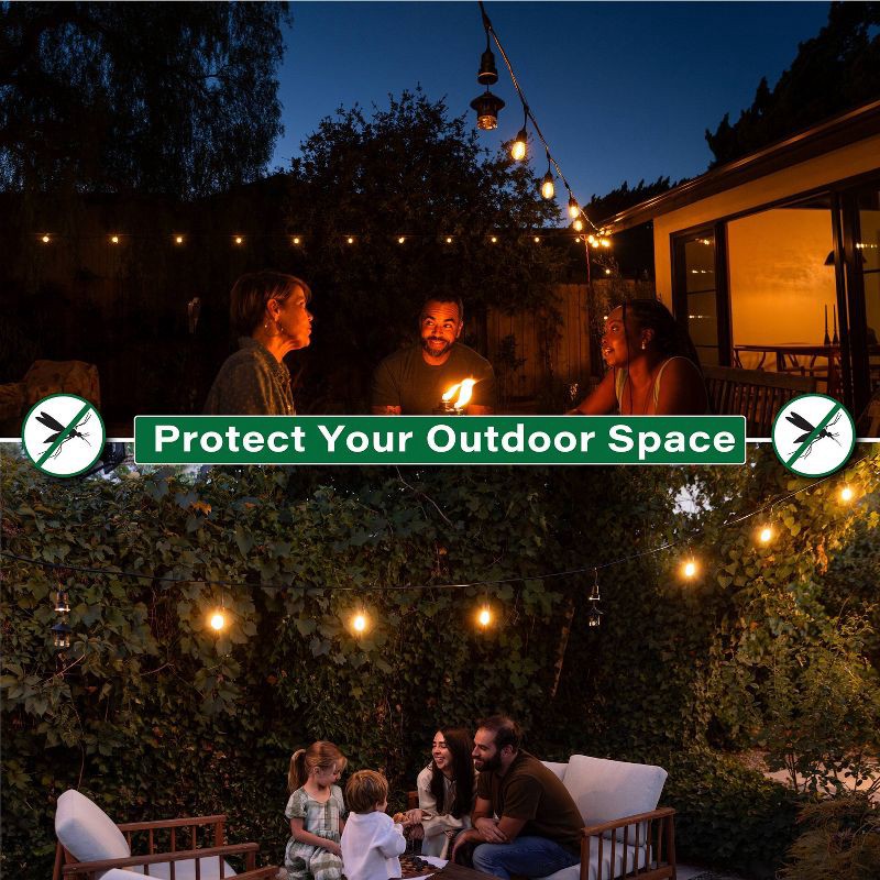 - Easy Integration: Forget messy sprays, bulky repellent devices, complicated setups, and unreliable yard treatments. Plug & Repel installs directly into your existing outdoor string lights, allowing you to connect one or multiple devices for expanded coverage. Enjoy convenient, effective mosquito repellent across patios, porches, decks, and backyard spaces.