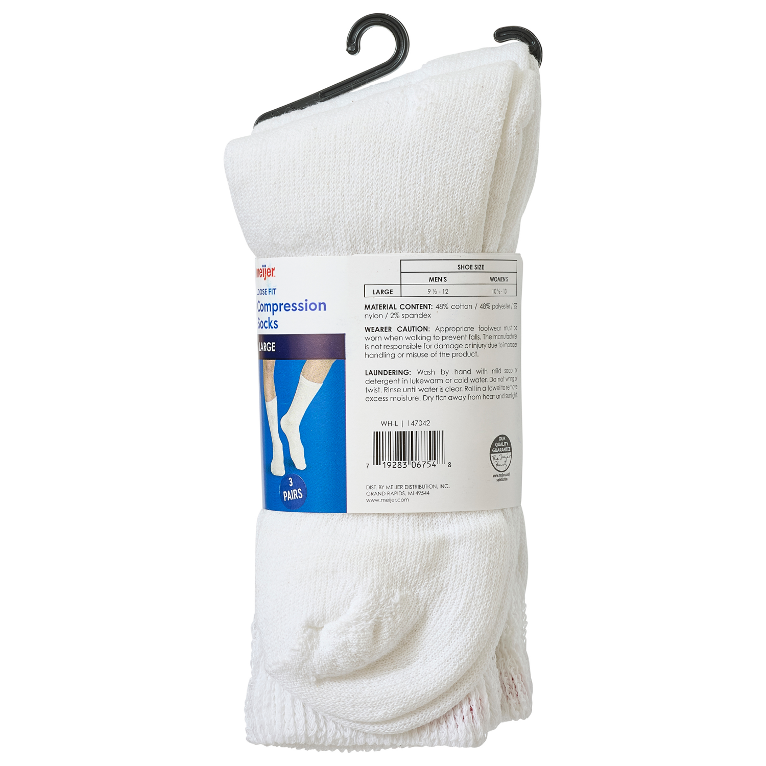 Meijer Loose Fit Compression Socks, Large, 3 Pk