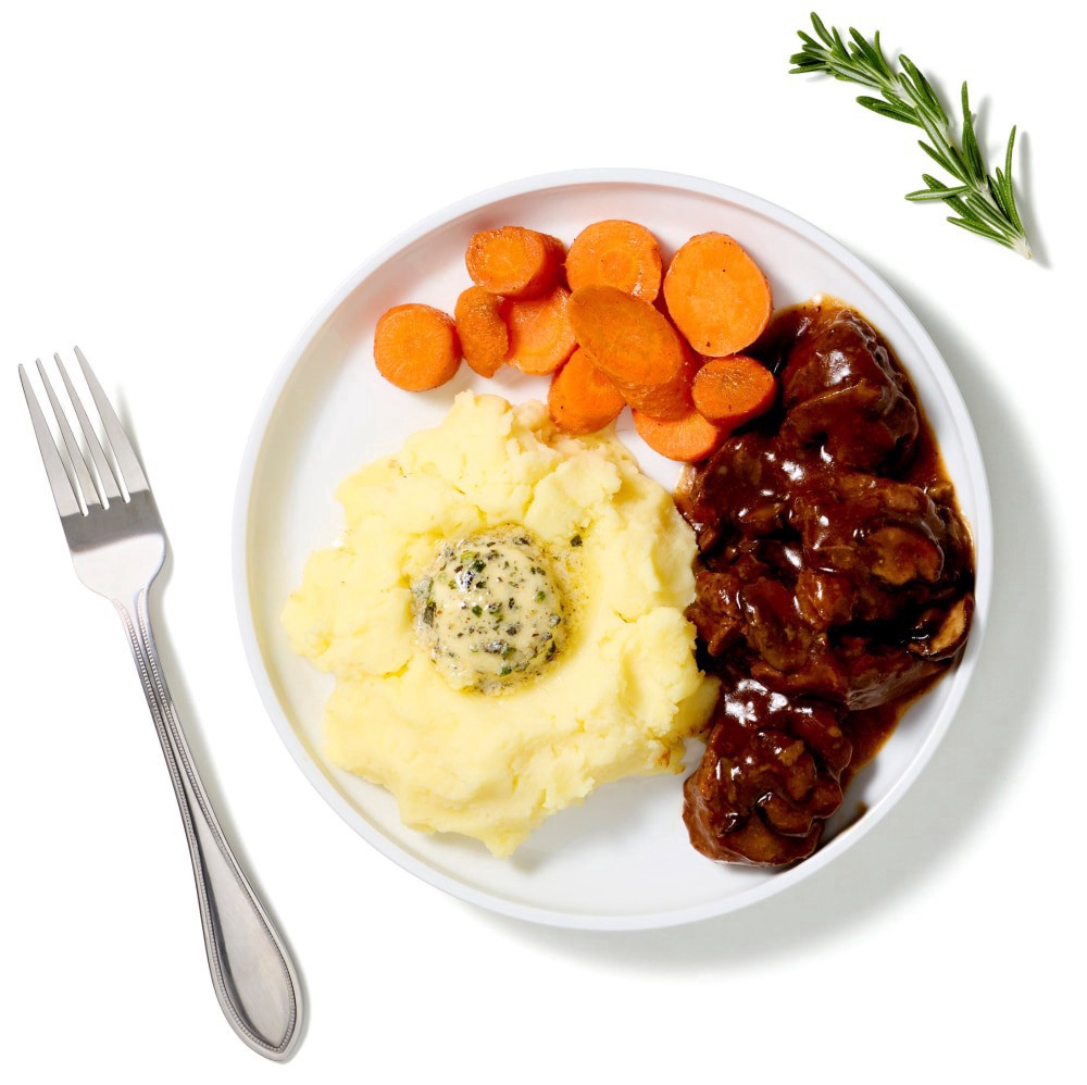 Mashed Yellow Potatoes (Potatoes, Skim Milk, Butter [Cream, Salt], Whole Milk, Salt, Disodium Pyrophosphate [Added to Maintain Color], Potassium Sorbate [Added to Maintain Freshness]), Braised Beef To…