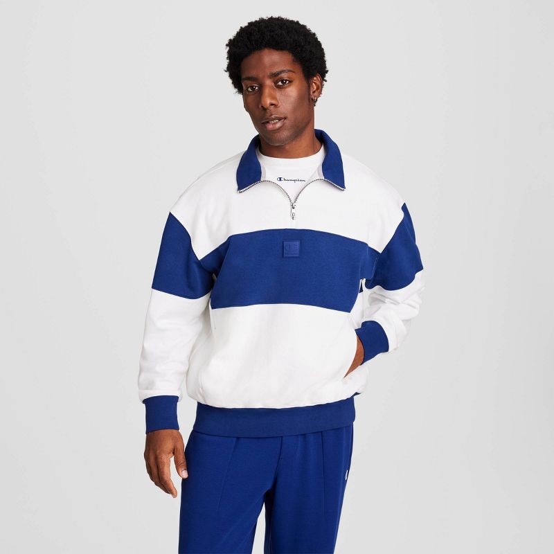 Champion Men's Club Sport Pullover 1/4 Zip French Terry Sweatshirt - Blue Depths XL