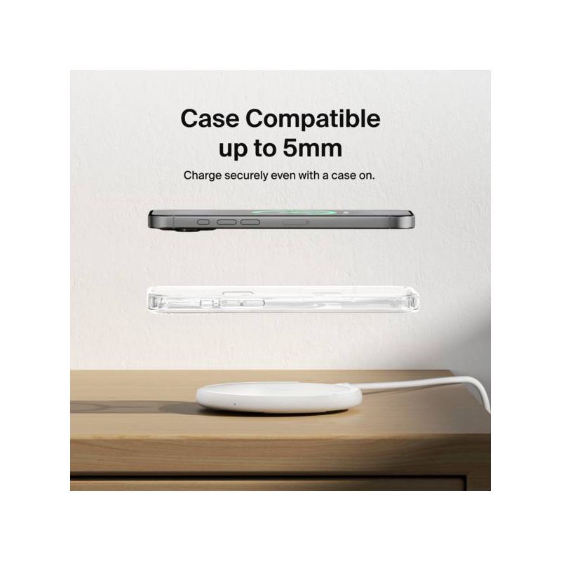 Belkin 15W Qi Charging Pad - White: MagSafe Compatible, USB-C Connection, Quick Charge