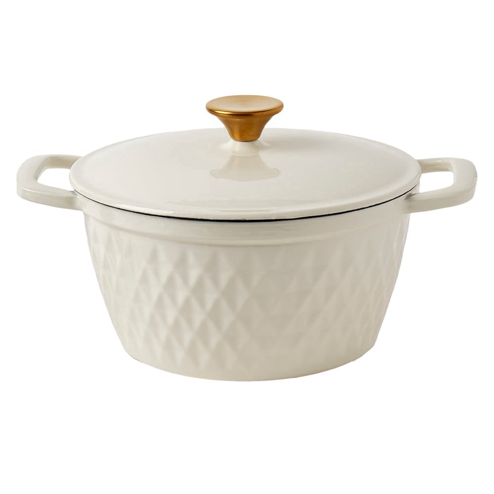 Prepare savory and satisfying dishes with this Enameled Cast Iron Dutch Oven from SDS for HD Designs. Featuring a matte finish and faceted design, this Dutch oven is made with sturdy cast iron constru…