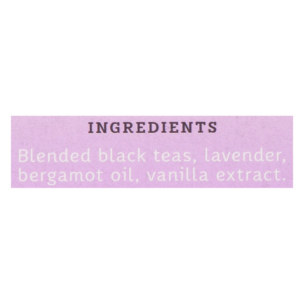 Blended Black Teas, Lavender, Bergamot Oil, Vanilla Extract.