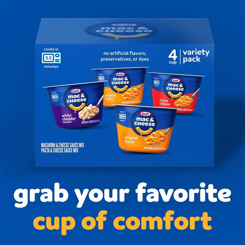 Help yourself to a cup of comfort. Kraft Mac and Cheese Dinner Cups are easy and ready in just minutes. Kids and adults love the rich taste and creamy texture of macaroni pasta with cheesy goodness. E…