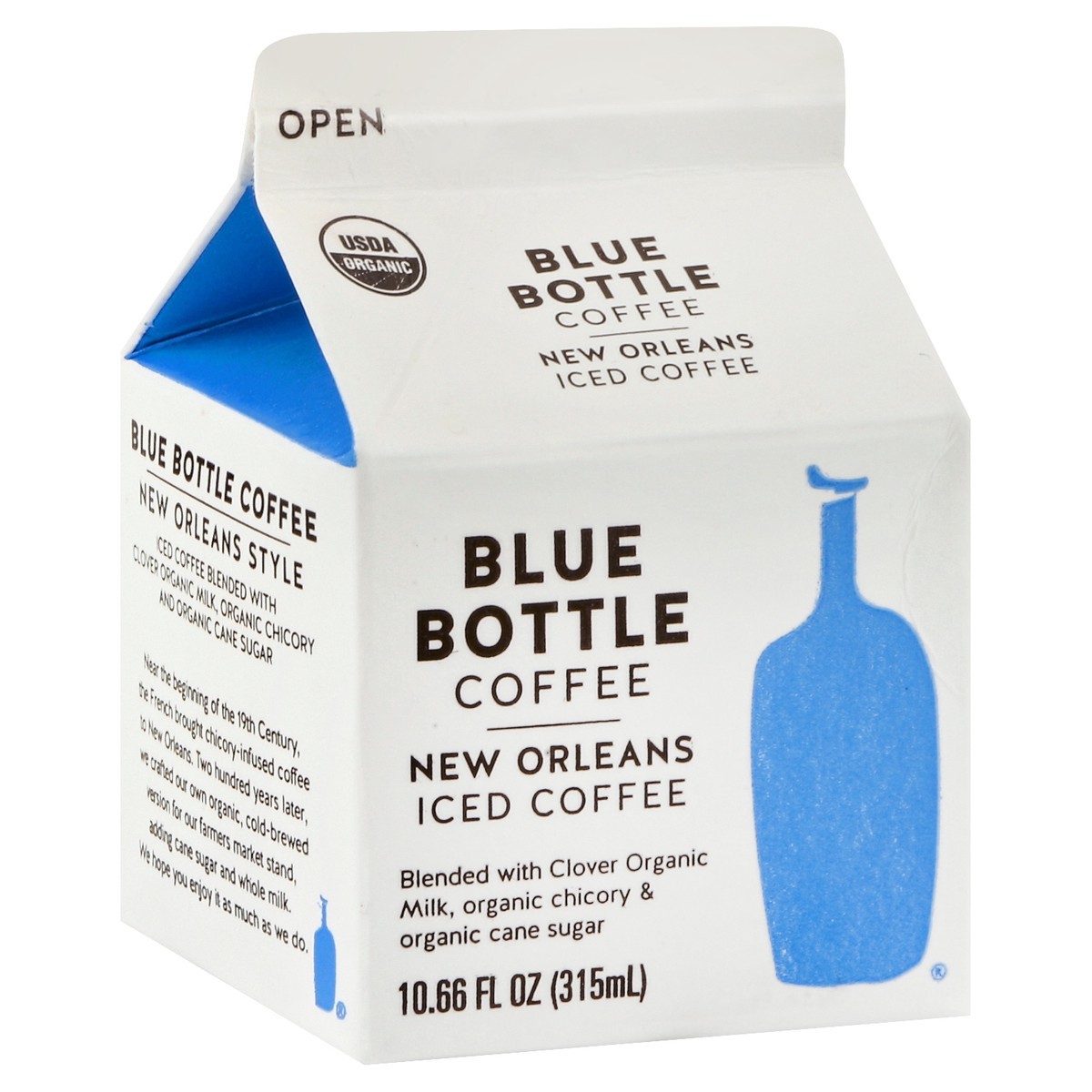 Blended with clover organic milk, organic chicory & organic cane sugar. USDA organic. Certified organic by QCS. Bluebottlecoffee.com. Blended with clover Petaluma, CA since 1916. Iced coffee blended w…