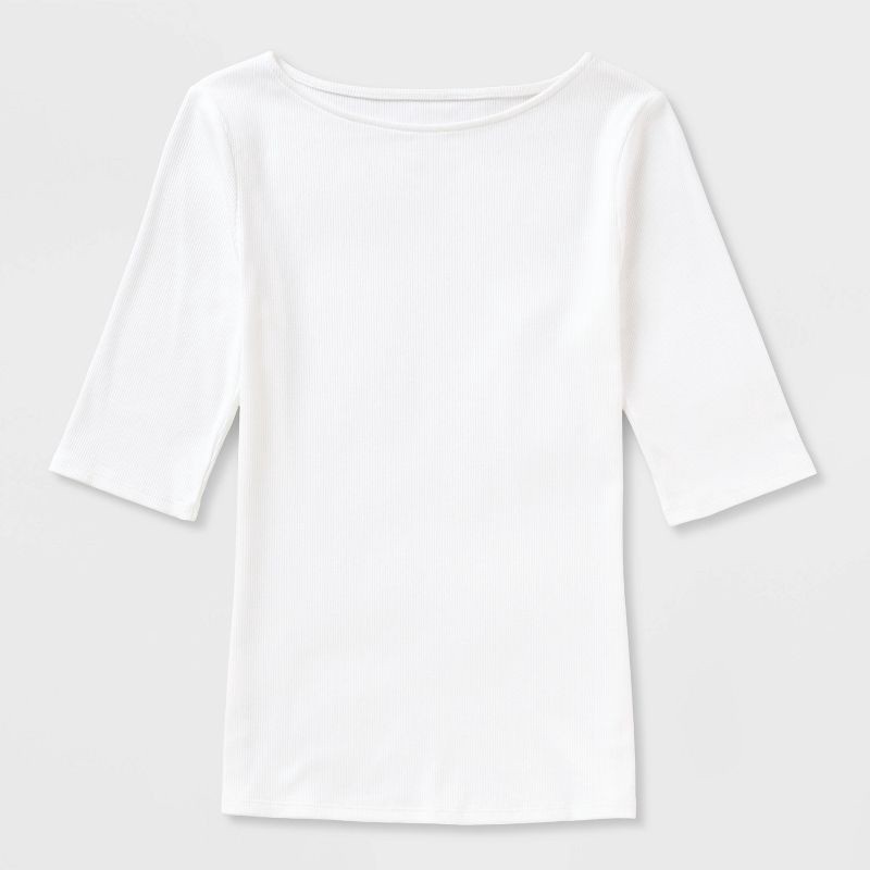 Women's Modern Ribbed Elbow Sleeve Top - A New Day™ White XL