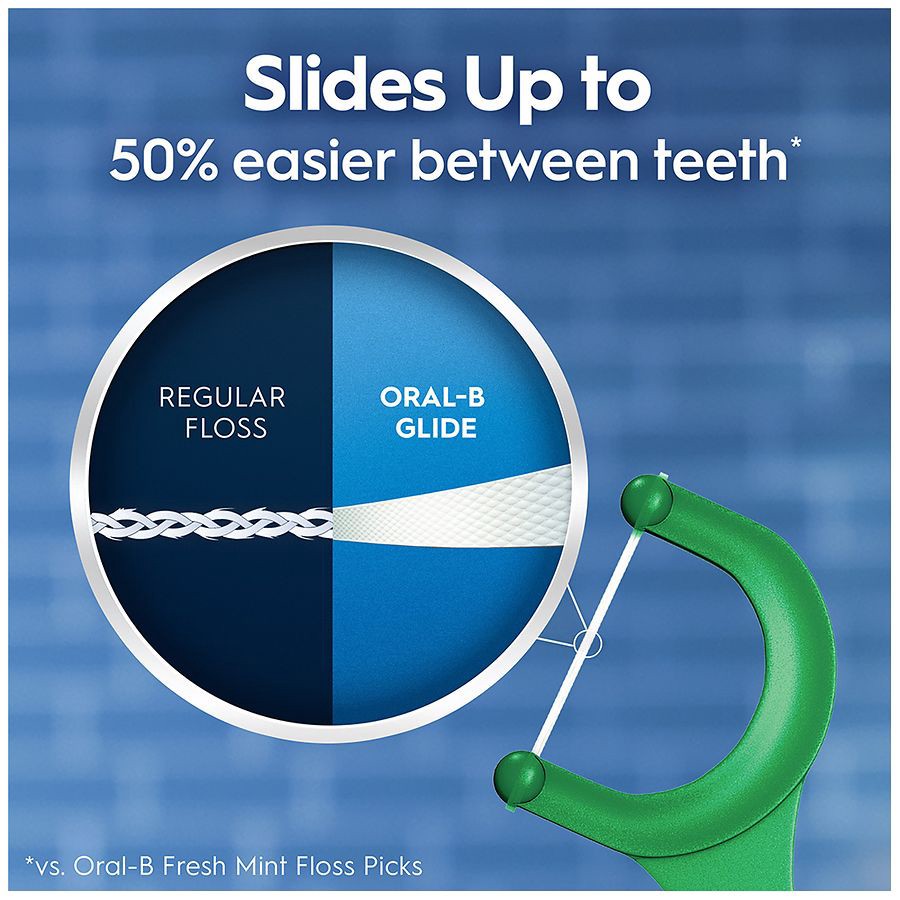 Oral-B Glide Floss Picks + Scope Outlast Flavor combines the freshness of Scope flavor and the silky-smooth texture of Glide floss with the ease of a floss pick. Oral-B Glide Floss Picks slide up to 5…