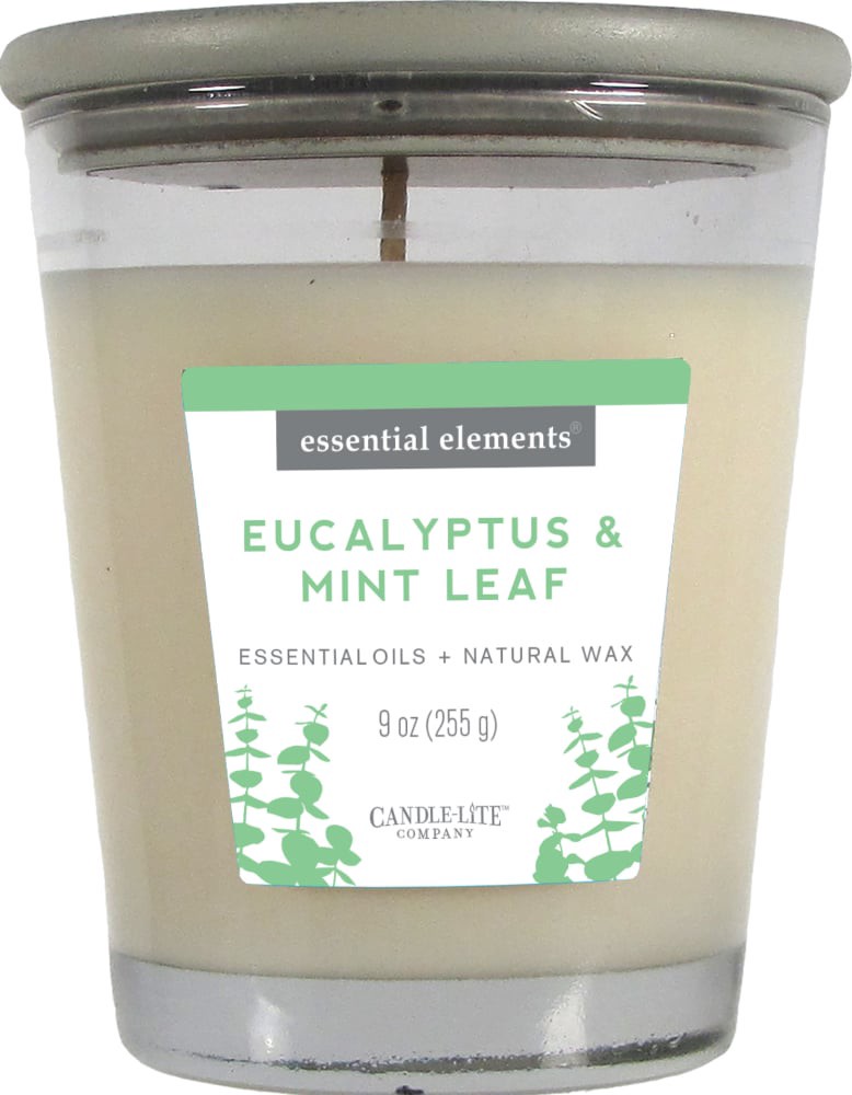Candle-Lite Essential Elements Eucalyptus And Mint Leaf Candle - White