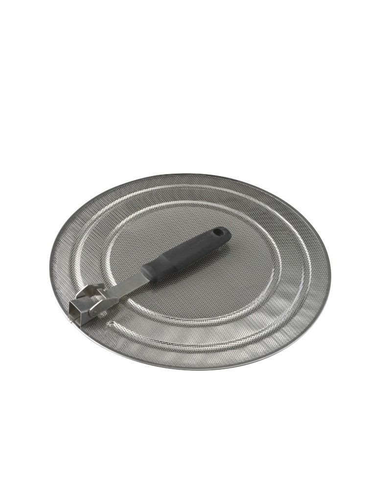 This perforated stainless-steel splatter screen is easy to clean and won't singe like mesh.Handy splatter mesh screen fits on top of any 13" pan while cooking to prevent splatter onto stovetops and co…