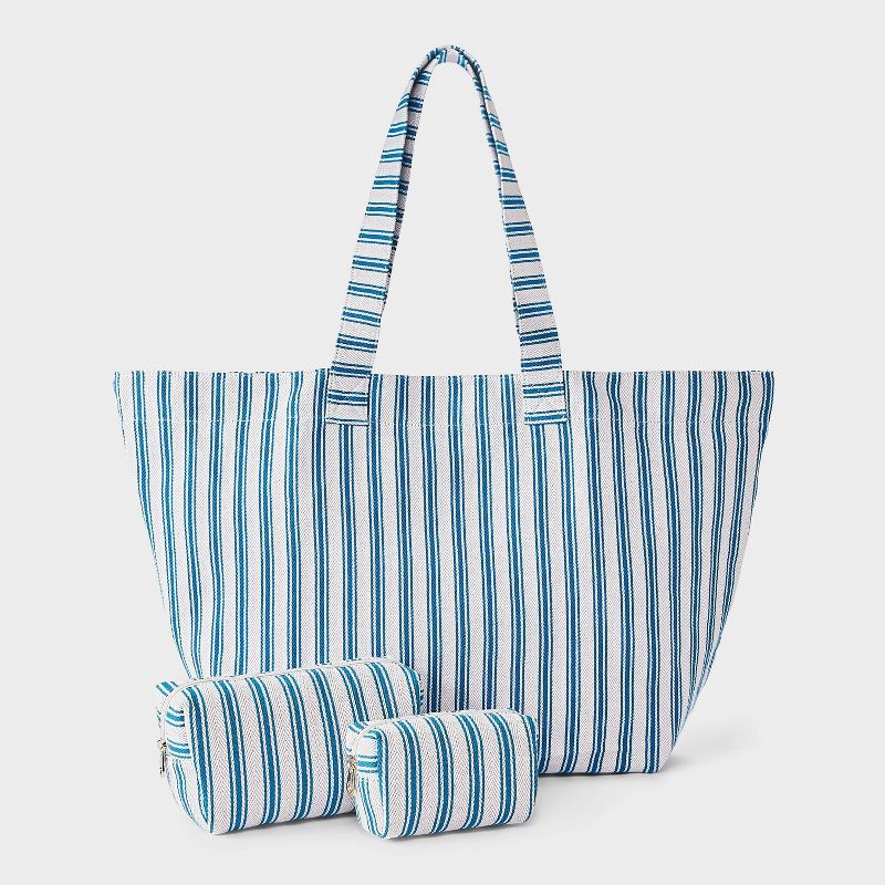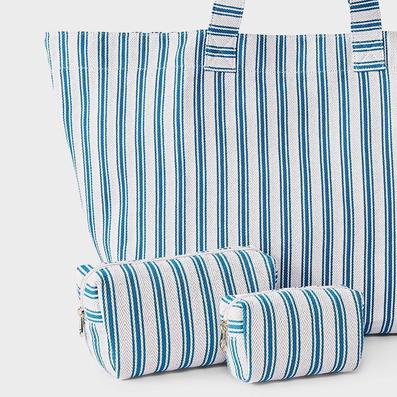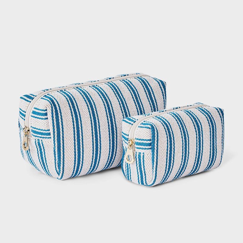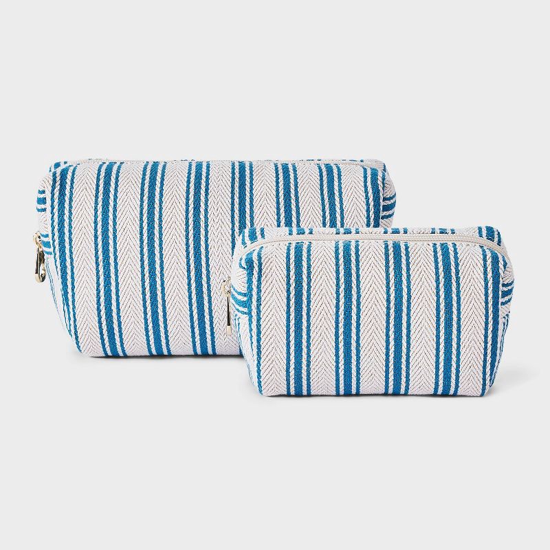 Striped Linen Cosmetic Pouch 2pc Set - Universal Thread™ Blue