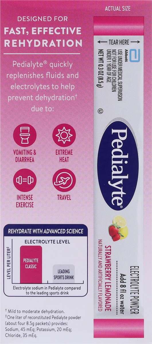 Pedialyte Strawberry Lemonade Electrolyte Powder - 8 x 0.3 oz Packets