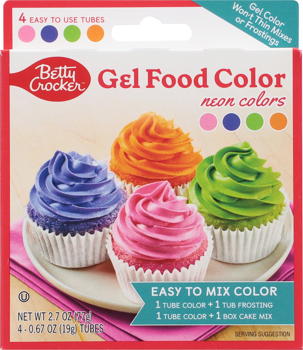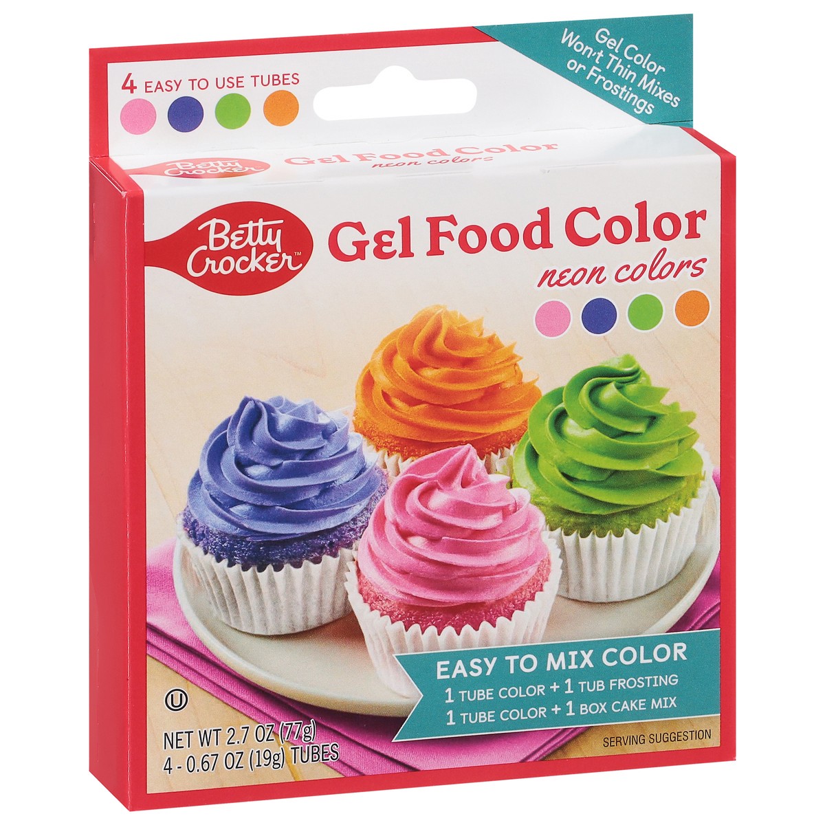 4 easy to use tubes. Gel colors won't thin mixes or frostings. Easy to Mix Color: 1 tube color + 1 tub frosting. 1 tube color + 1 box cake mix. Easy color blending & mixing. Gel base won't dilute even…