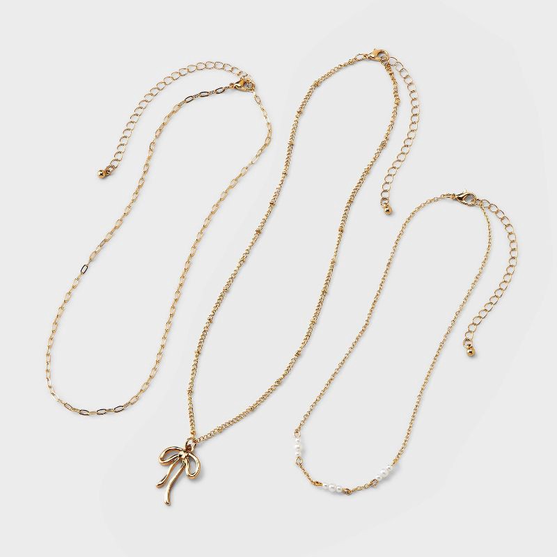 Girls' 3pk Bow Charm Layered Necklace Set - Cat & Jack™