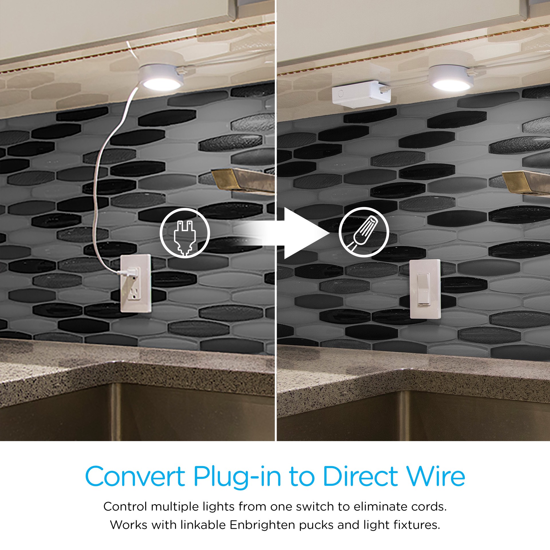 Direct wire conversion eliminates cord clutter. Allows you to control all connected lights from one switch. Easy installation. One wiring kit allows you to hardwire up to 10 linkable fixtures. Convert…