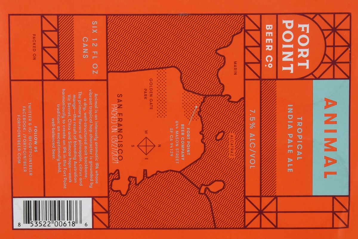 Fort Point Beer Co. Animal Tropical India Pale Ale Beer 6-12 fl oz Cans