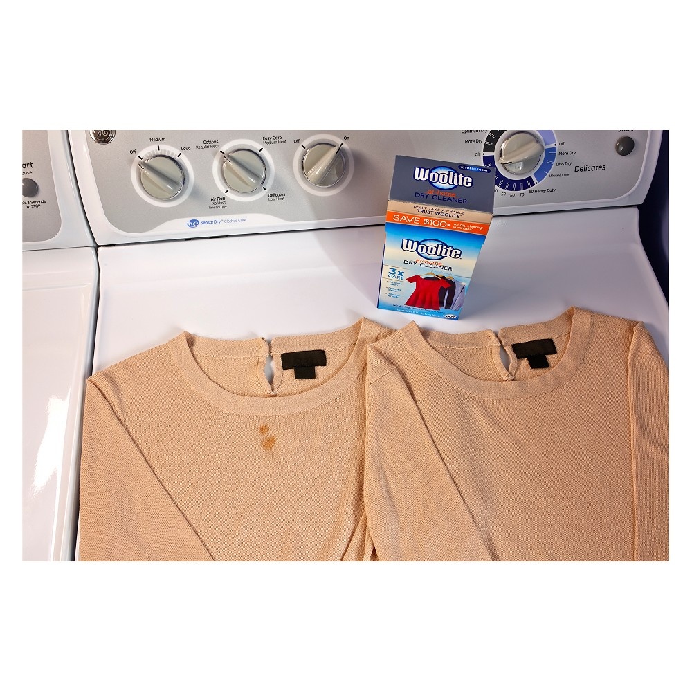 It's as easy as 1-2-3! (and no bulky bag to hassle with!) 1. Seeing spots? Test for colorfastness in a hidden area. Place a white paper towel under small stain. Gently blot with Woolite cleaning cloth…