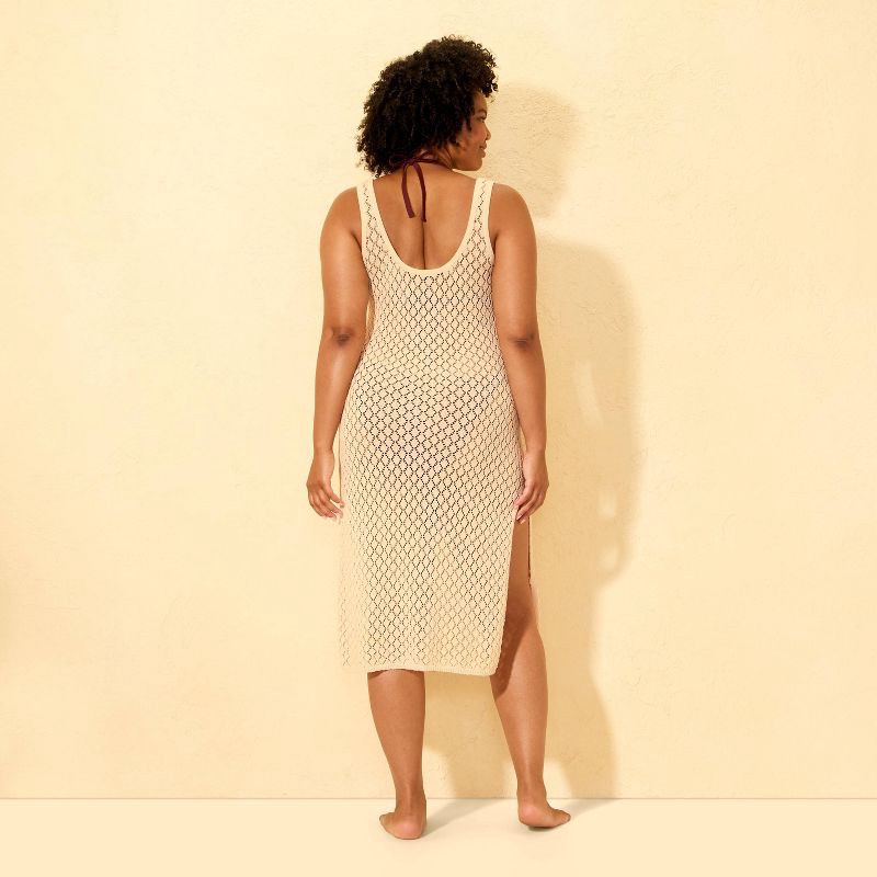 Women's Crochet Ring Front Midi Dress Cover Up - Shade & Shore™ Cream L
