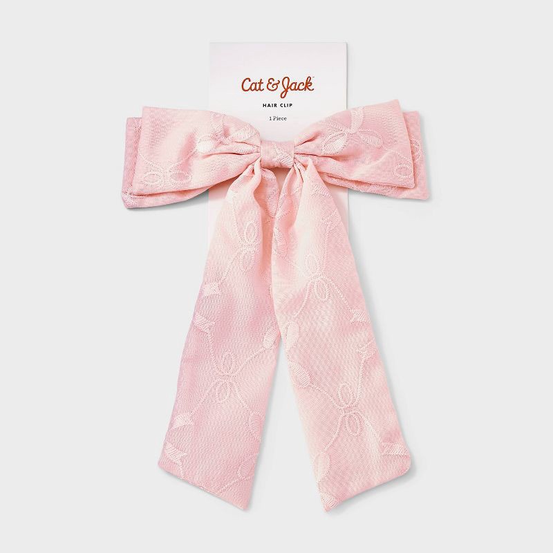 Girls' Embroidered Barrette Bow - Cat & Jack™ Pink