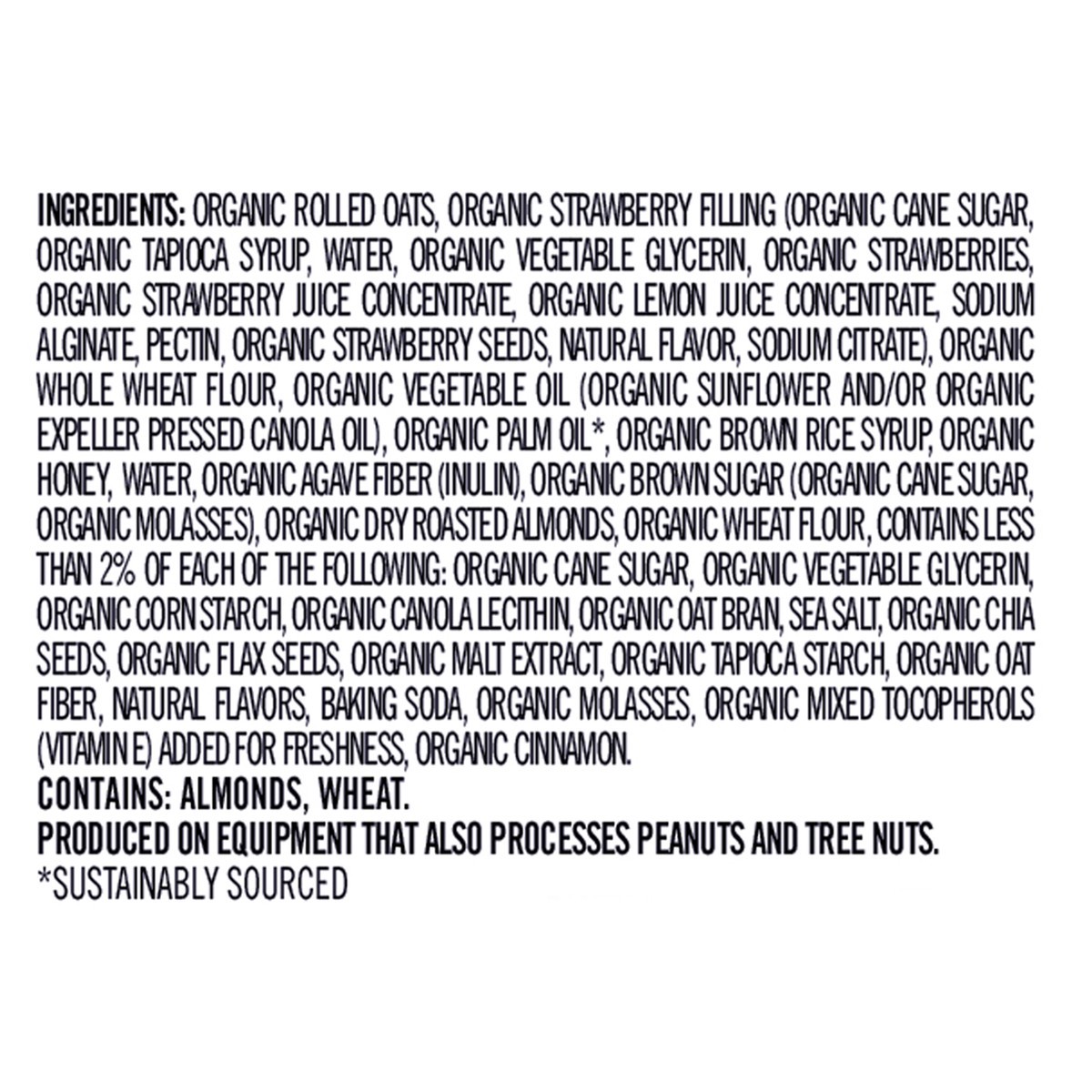 Organic Rolled Oats, Organic Strawberry Filling (Organic Cane Sugar, Organic Tapioca Syrup, Water, Organic Vegetable Glycerin, Organic Strawberries, Organic Strawberry Juice Concentrate, Organic Lemon…
