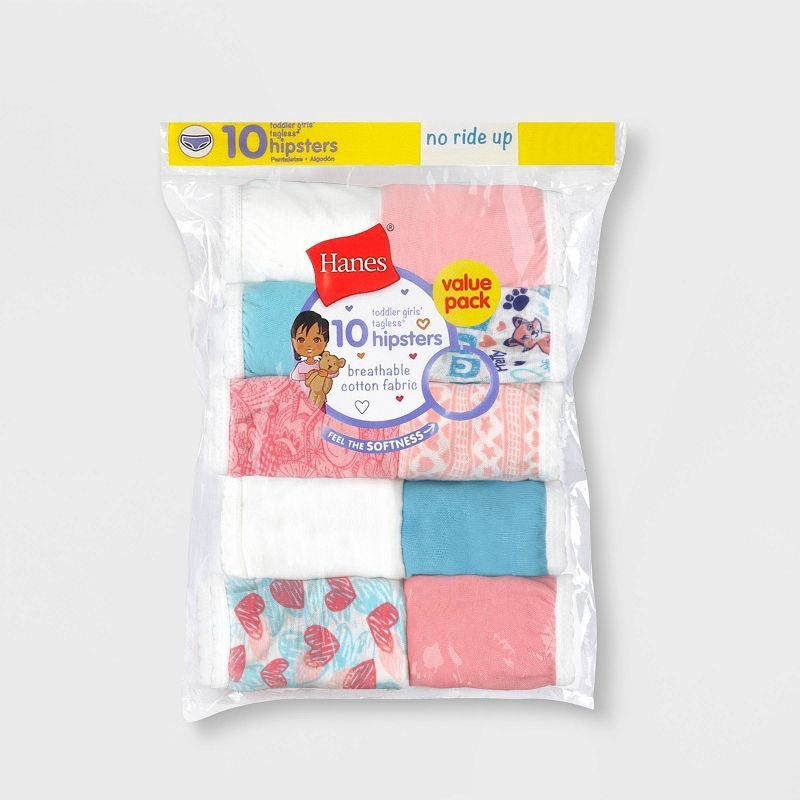Hanes Toddler Girls' 10pk Hipster Briefs - Colors May Vary 2T-3T: Cotton, Tagless, Pull-On, Solid Pattern