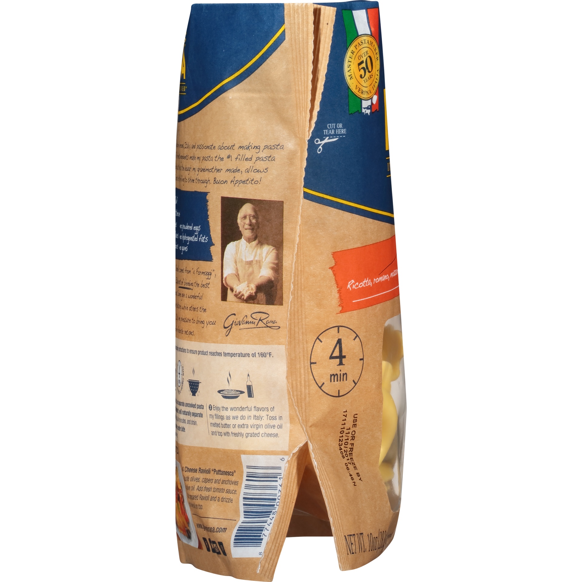 4 Cheese Ravioli. Deliciously creamy ricotta, parmesan, provolone, and mozzarella cheese wrapped in thin dough. Packed with 14 grams of protein per serving. Made with no artificial flavors, no artific…