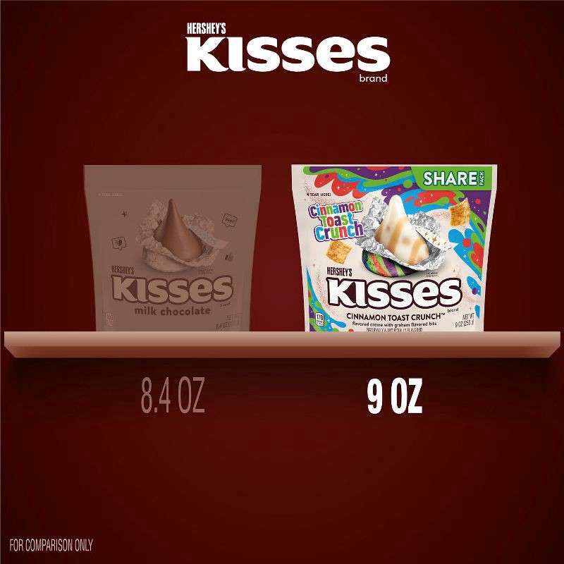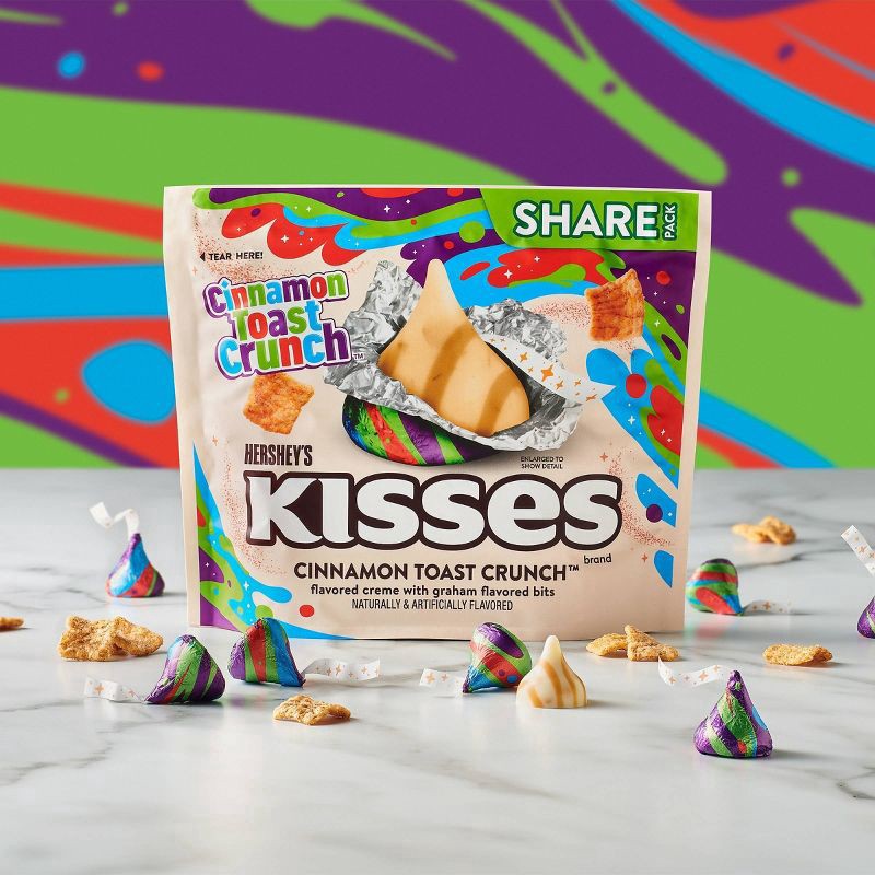 - Snack drawers and lunch boxes with this limited edition treat for flavorful snacking on the go and at homeKosher candy individually wrapped in brightly colored foils inside a convenient share pack for lasting freshnessStuff graduation party favors and birthday party candy bags with HERSHEY'S KISSES CINNAMON TOAST CRUNCH™ flavored candyShare these limited edition HERSHEY'S KISSES treats to celebrate special holidays and all the ordinary days in betweenTake delicious the extra mile by adding this delectable candy to ice cream