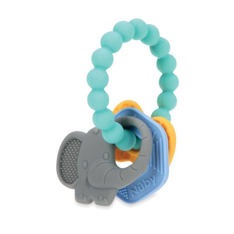 The Nuby Chewy Charms Silicone Teething Ring is designed to soothe, stimulate, and massage your baby's gums. The soft silicone baby teether toy features lightly textured surfaces that massage and soot…