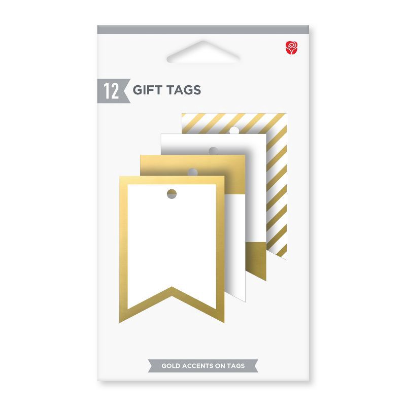 American Greetings 12ct Blank Gift Tags with Strings Gold/White