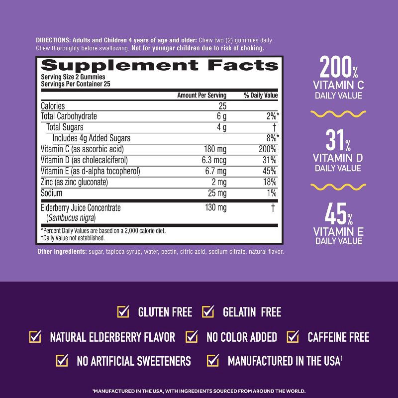 • VITAMIN C: Not all immune support gummies are created equal – and these stand out for good reason! These Airborne Elderberry flavored gummies are packed with 200% of your daily value of Vitamin C per serving (whoa!).