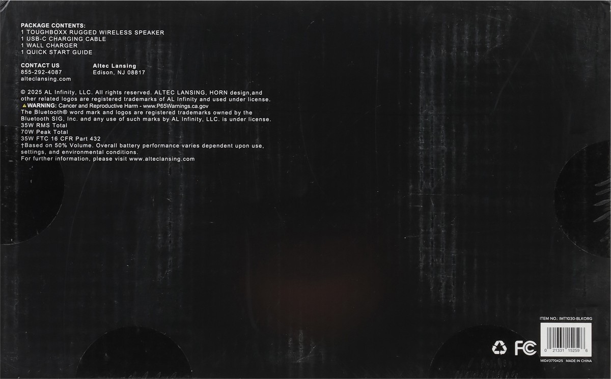 Altec Lansing Toughboxx Rugged Wireless Speaker
