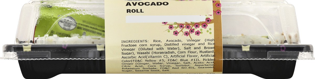 Rice, Avocado, Vinegar (High Fructose Corn Syrup, Distilled Vinegar and Rice Vinegar (Diluted with Water), Salt and Brown Sugar), Wasabi (Horseradish, Corn Flour, Mustard, Ascorbic Acid (Vitamin C), A…