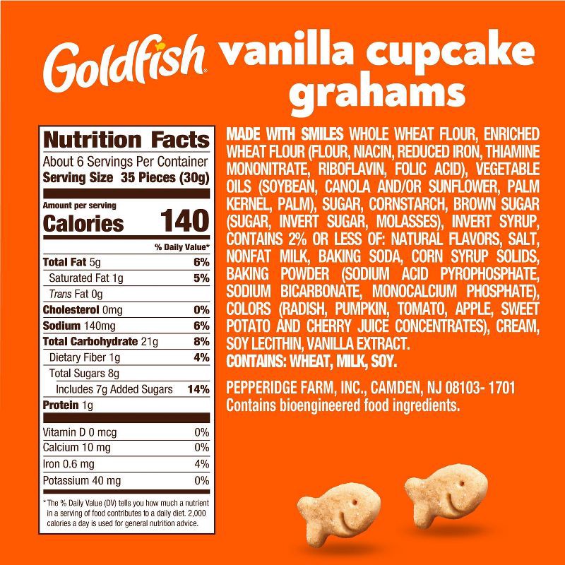 - Includes one (1) 6.6-ounce bag of Goldfish Vanilla Cupcake Grahams snack crackers