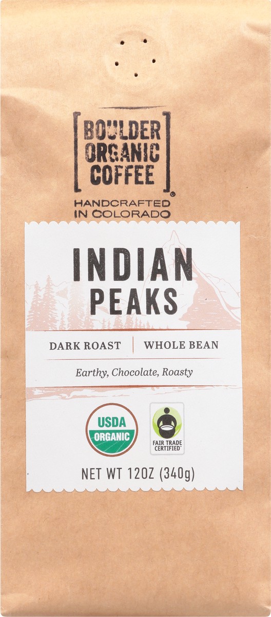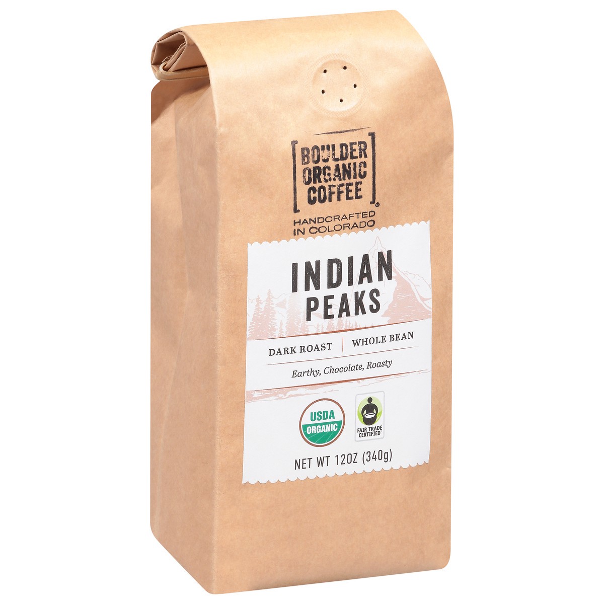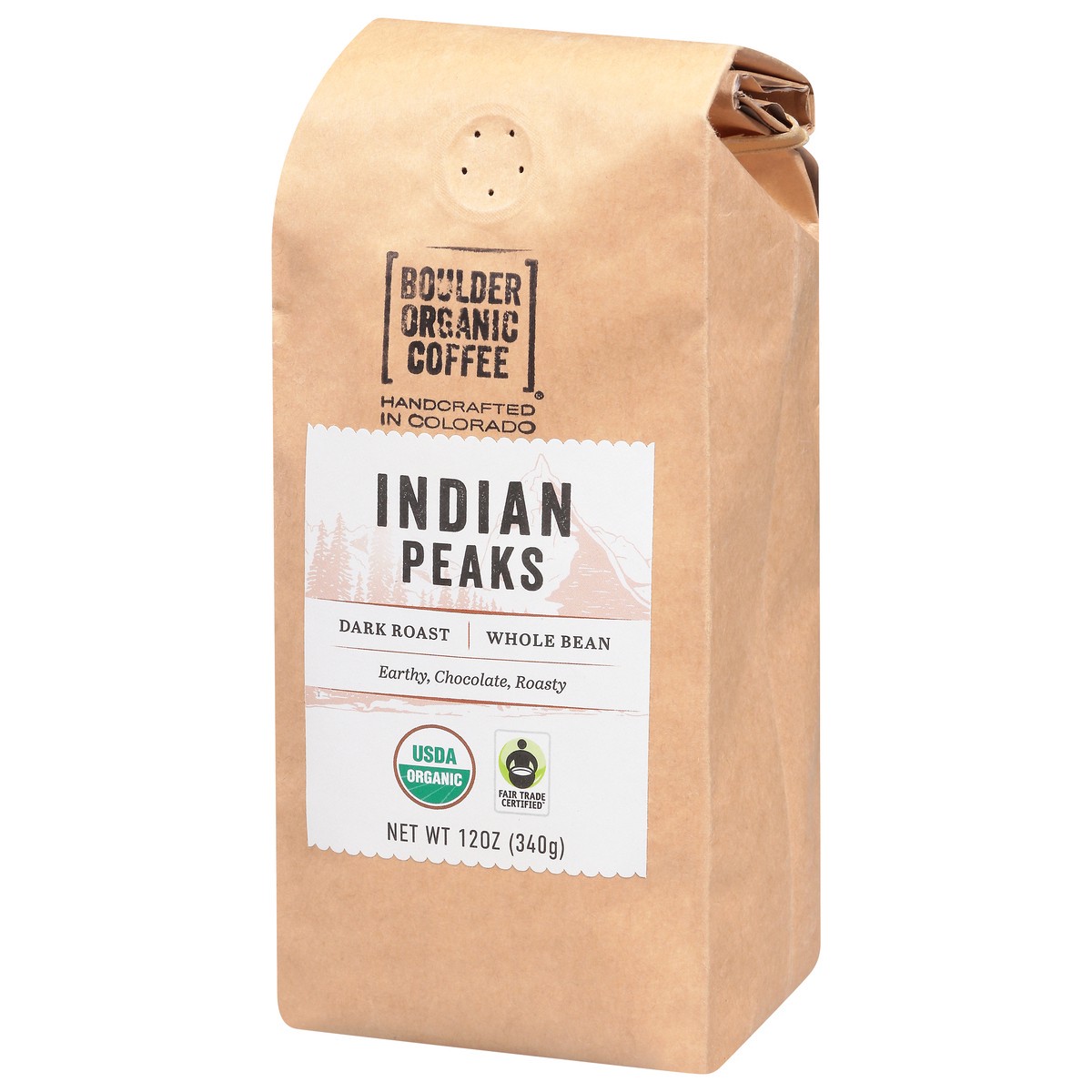 Boulder Organic Coffee Dark Roast Whole Bean Indian Peaks Coffee 12 oz