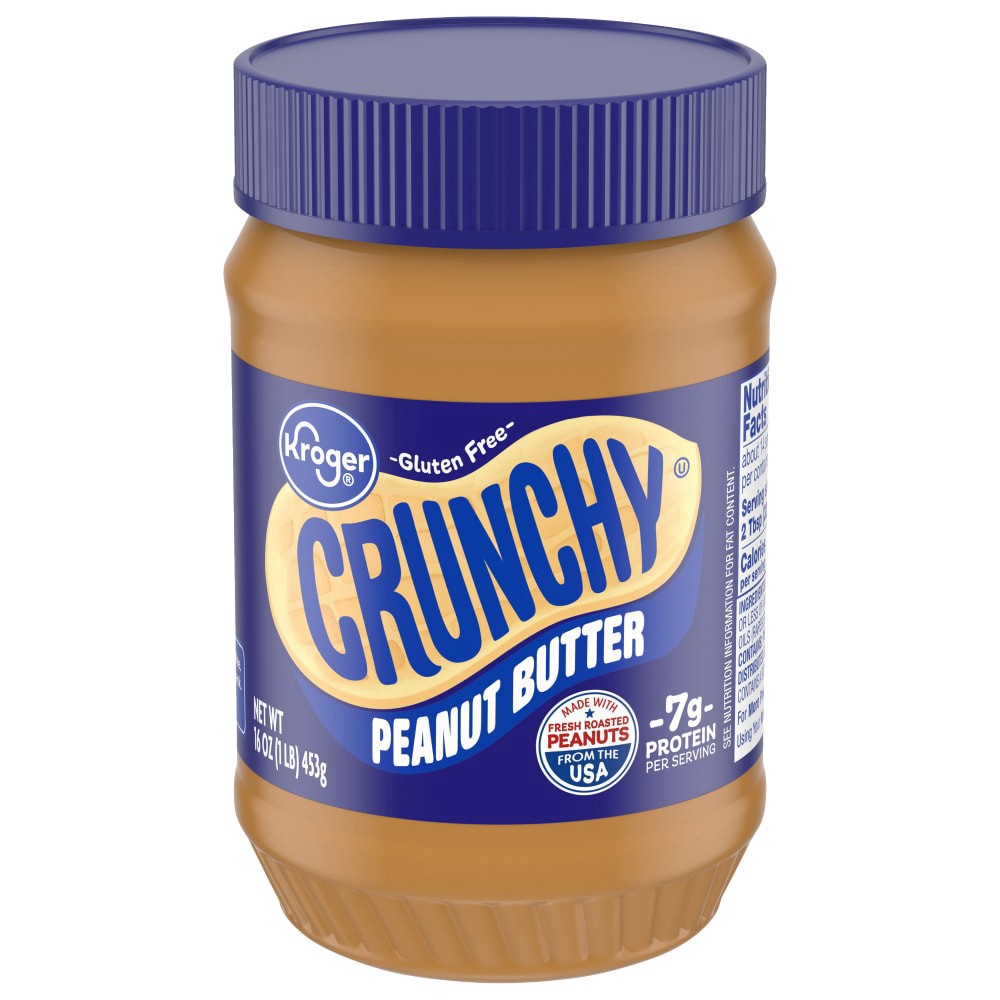 Kroger® Crunchy Peanut Butter is a delicious addition to your pantry. With 7g protein per serving, savor the rich flavor of roasted peanuts. Whether smearing on your morning toast or adding an extra t…