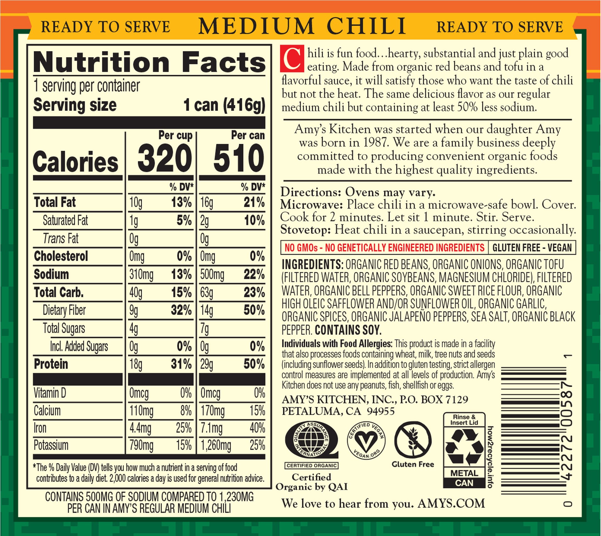 Amy's Light In Sodium Medium Chili - 14.7 Oz