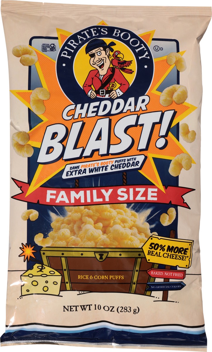 Pirate's Booty Cheddar Blast! Rice & Corn Puffs Family Size 10 oz