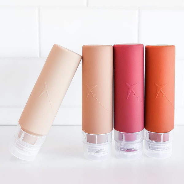 Our set of refillable travel bottles are made of soft and durable silicone. Great for travel, perfect for lotions, shampoo, conditioner and more. Easy to fill and to squeeze, and carry-on approved.