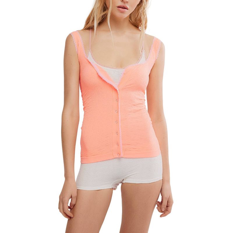 intimately fp Women's Seamless Lace Button Front Cami - Sun Kiss Coral L/XL