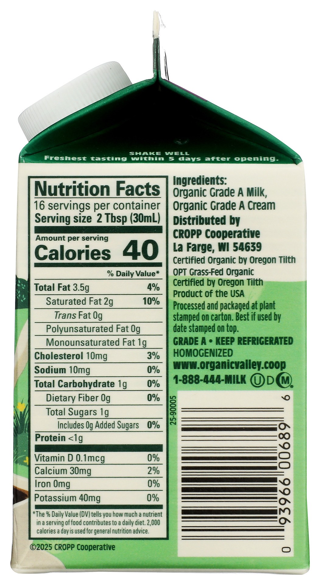 Organic Grade A Milk, Organic Grade A Cream.