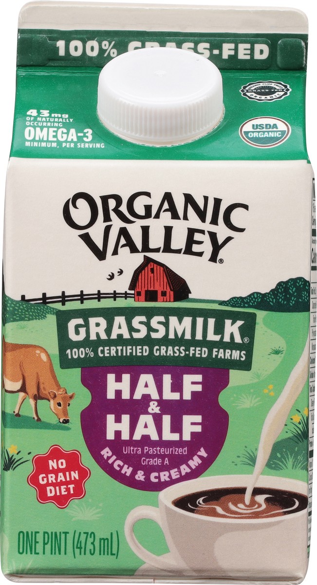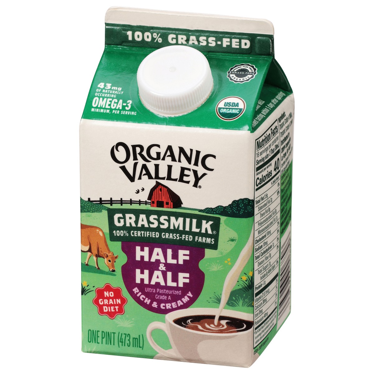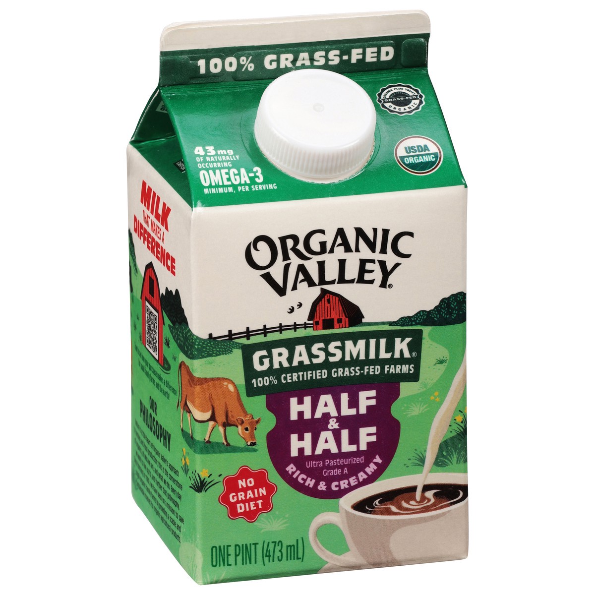 Organic Valley Grassmilk Organic Half & Half blends organic milk and cream from pasture-raised cows, on 100% grass fed certified farms to deliver a rich, velvety texture and naturally creamy taste. Of…